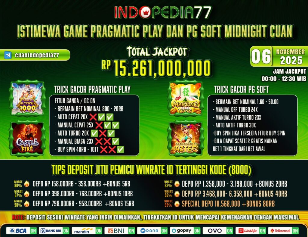 Indopedia77 sudah menjadi agensi slot yang terkenal di Indonesia. Pembayaran kemenangan member berapapuntetap dibayarkan tanpa perlu waktu lama.
